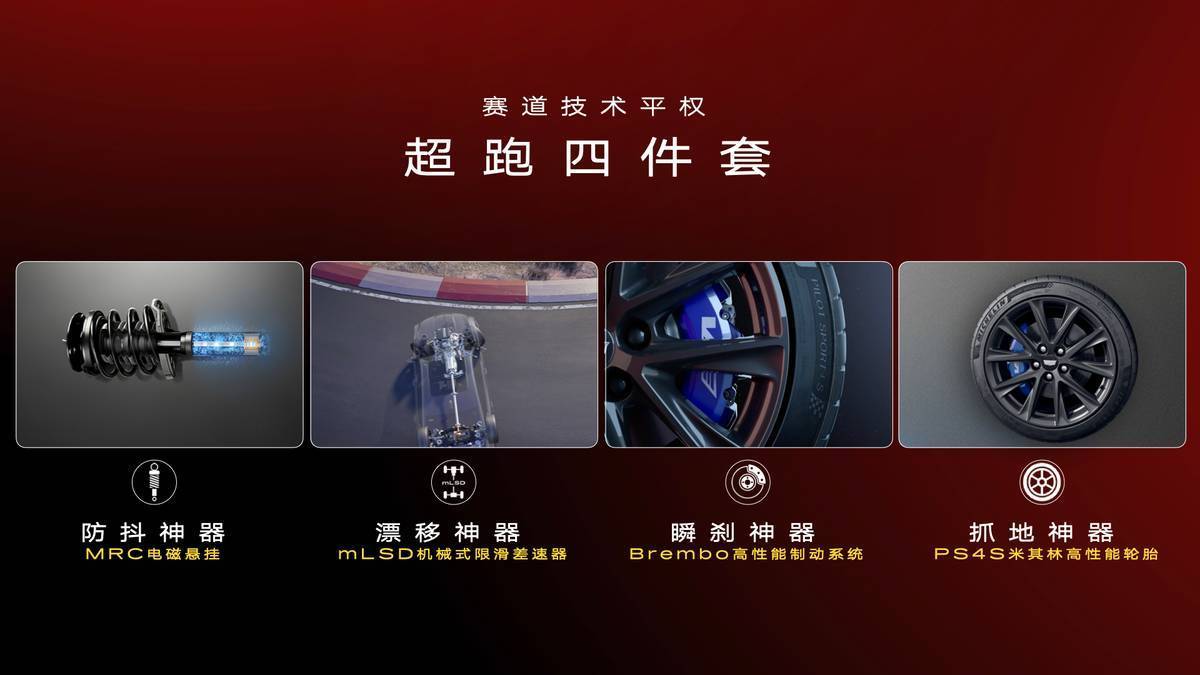 凯迪拉克从20世纪40年代起就从未放下对性能的追求,全新CT5不仅经受了品牌的优秀传统,更是在性能上完结了遏止性的普及。全新CT5搭载了享誉车圈的“超跑四件套”,这些在百万级性能车上材干见到的建设,无疑让其在豪华品牌中完结了的确的赛说念级性能平权。其中,第四代MRC电磁吊挂每秒可扫描路面1000次,为车辆提供了出色的操控褂讪性和乘坐欢欣性;mLSD机械式限滑差速器单侧能源分拨比例高达62.5%,可谓是漂移神器;高性能Brembo制动系统则让全新CT5百公里刹停时辰仅需33.08秒;而米其林PS4S轮胎则提供了出色的持地力,合营同级独一FNC碳氮共渗技艺刹车盘,让驾驶者在高速行驶时也能感受到车辆的褂讪性和安全性。