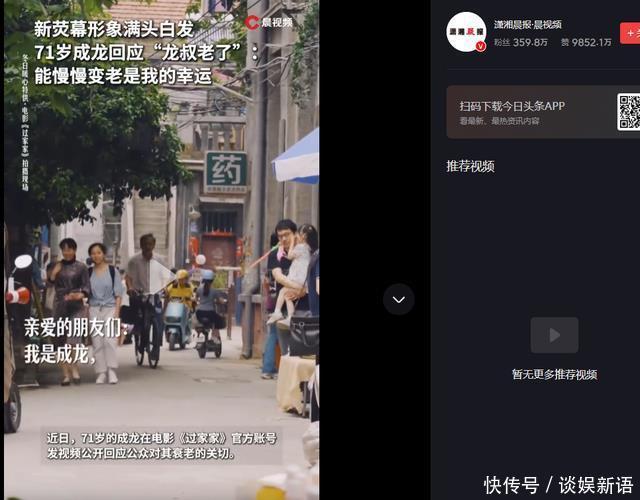 视频中不错看到成龙满头的鹤发,脸上的皱纹很彰着不错看到,而他却依旧笑着说谈:“谢谢你们还铭记我几十年前的样式,东谈主呐,王人会老的……能冉冉变总是我的红运。”