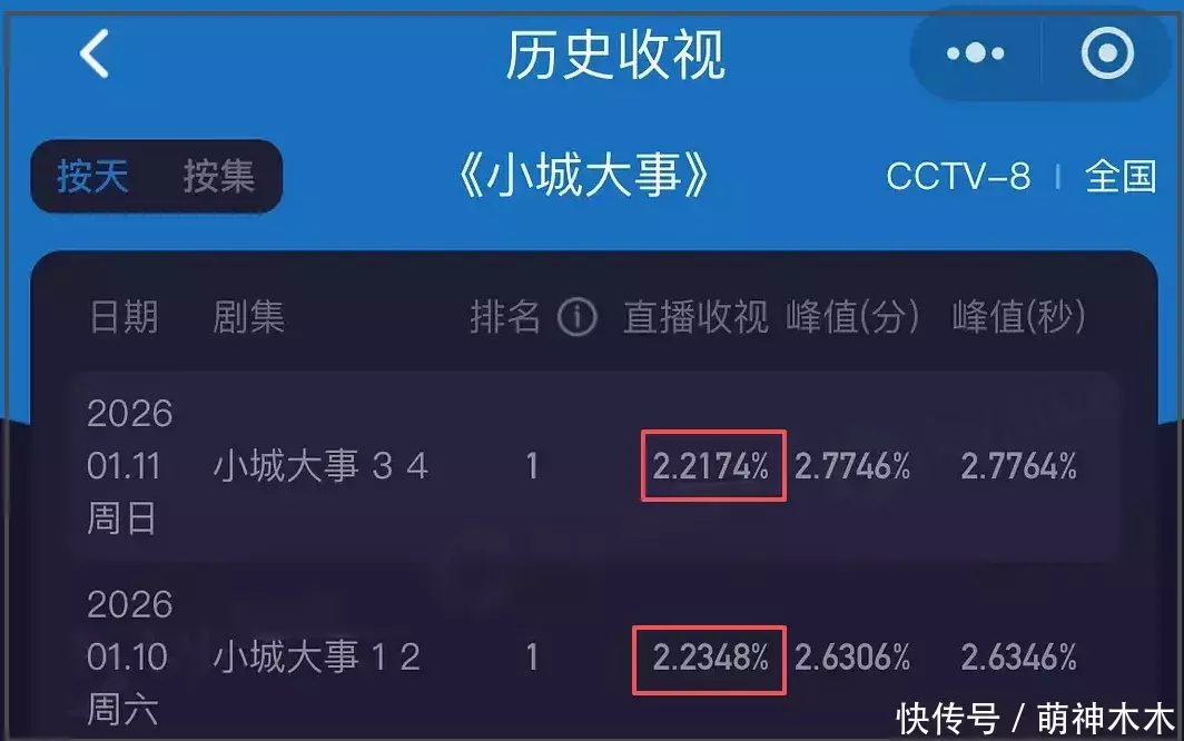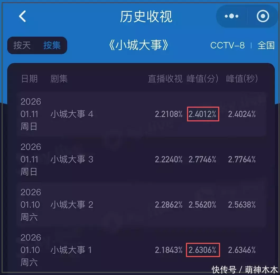 收视率方面,《小城大事》高开低走,前两集全体收视呈飞腾趋势,后两集全体收视不升反降,最新一集的收视峰值数据致使不如第一集。从这两天的全体收视对比能够看到收视走势显著疲软,剧情没能留下不雅众。