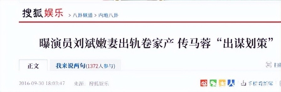 搜狐文娱:曝演员刘斌嫩妻出轨卷家产传马“出筹画策”