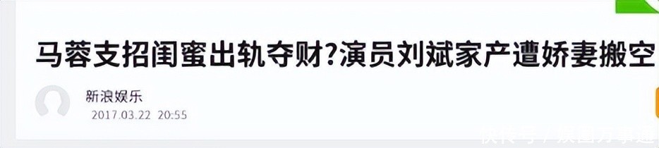 新浪文娱:马蓉支招闺蜜出轨夺财?演员刘斌家产遭娇妻搬空